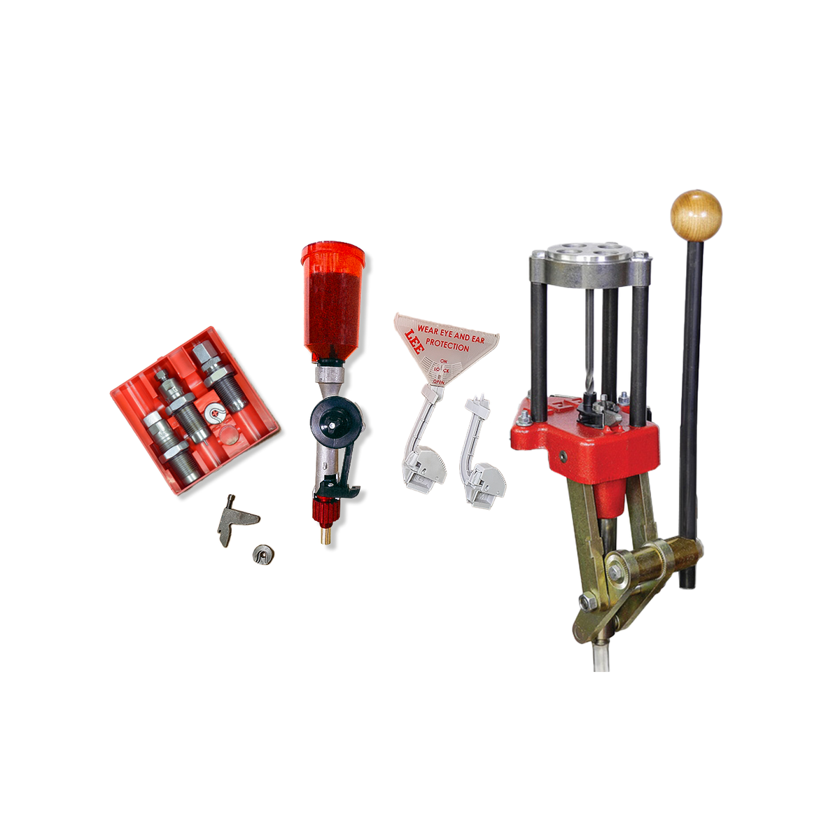 O kit de recarga da Lee Classic Turret possui todos os recursos necessários para uma recarga completa. Além da famosa prensa Classic Turret, o conjunto inclui itens essenciais para o processo, como é o caso do polvorímetro e espoletador.