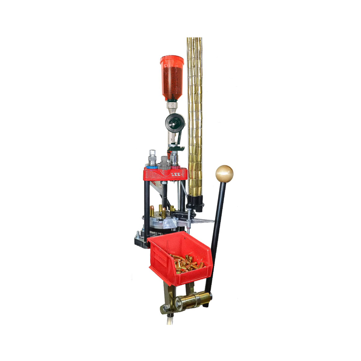 A prensa inclui o Universal Case Feeder adequado para a maioria dos estojos de pistola e fuzil mais curtos. Com essa combinação, você terá uma experiência completa e versátil para atender às necessidades de suas recargas, garantindo um trabalho mais ágil e eficiente.