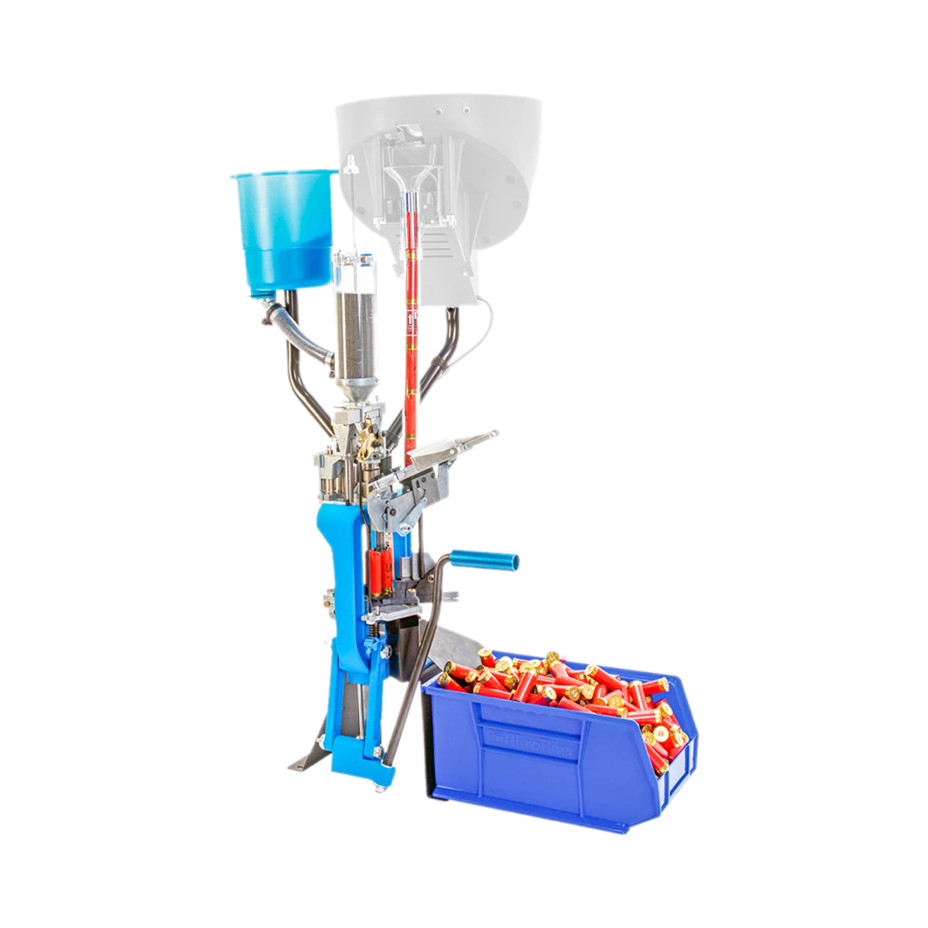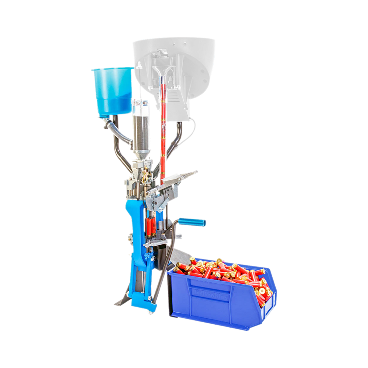 Com o polvorímetro automático incluso, esta prensa assegura a quantidade exata de pólvora em cada cartucho, garantindo uniformidade e desempenho consistente.